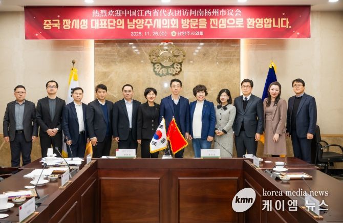 (케이엠뉴스) 남양주시의회는 26일 의회 소회의실에서 중국 장시성 간강신구 방문단을 영접하고, 양 기관의 우호·협력방안을 논의했다.