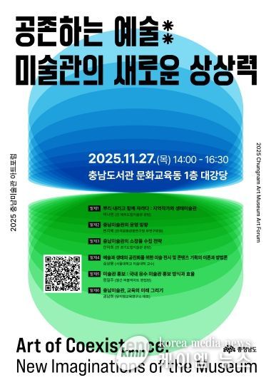 한편 충남미술관은 홍성군 신경리 887번지에 지하 2층, 지상 4층 규모(연면적 2만 8396㎡)로 건립 중이며, 도는 지역 예술계, 미술 분야별 전문가와 다양한 방식으로 소통·협력하면서 충남미술관만의 방향성과 운영 방안을 마련해 나가고 있다.