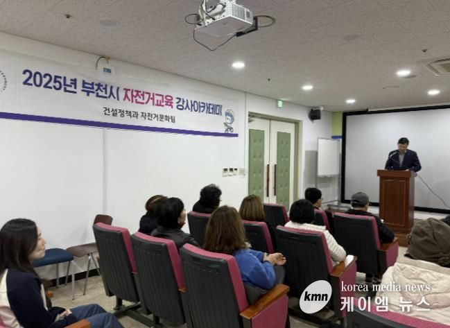 (케이엠뉴스) 부천시는 지난 26일 자전거문화센터에서 자전거 안전문화 정착과 생활 속 자전거 이용 활성화를 위해 ‘자전거 교육 강사 아카데미’를 운영했다. 이날 행사는 자전거 교육 강사 양성과 안전 문화 확산을 목표로 추진됐다.