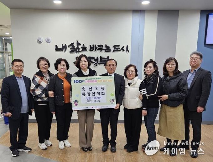 (케이엠뉴스) 의정부시 송산3동행정복지센터는 11월 25일 송산3동 통장협의회가 ‘100일간 사랑릴레이 배턴 잇기’에 동참해 성금 150만 원을 기탁했다고 밝혔다.