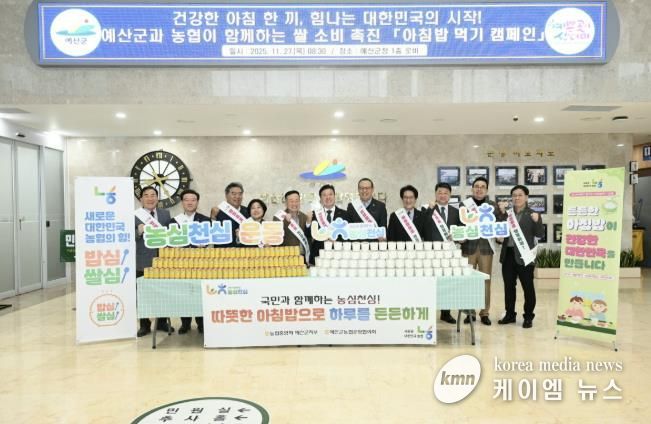 (케이엠뉴스) 예산군은 지난 11월 27일 농협중앙회 예산군지부와 함께 ‘쌀 소비촉진 범국민 아침밥 먹기 캠페인’을 성황리에 개최했다고 밝혔다.