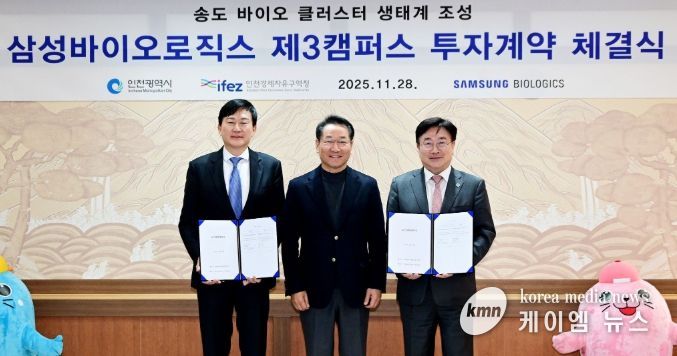 (케이엠뉴스) 인천경제자유구역청은 28일 오후 인천시청에서 삼성바이오로직스와 토지매매계약을 체결했다고 밝혔다.