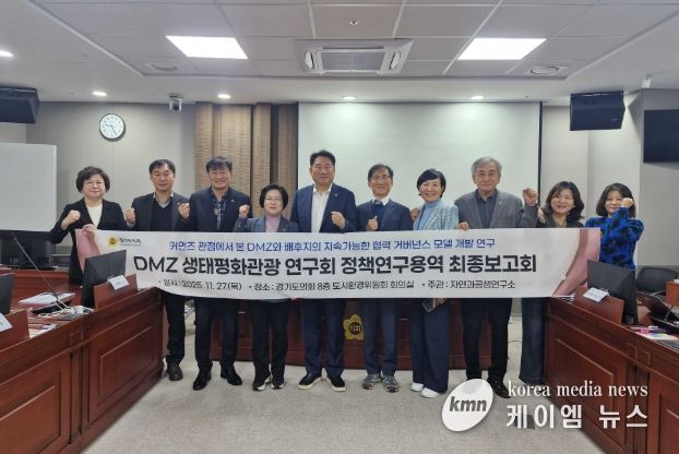 (케이엠뉴스) 경기도의회 의원연구단체인 DMZ생태평화관광 연구회(회장 오준환 의원)는 지난 27일 경기도의회 도시환경위원회 회의실에서 '커먼즈 관점에서 본 DMZ와 배후지의 지속가능한 협력 거버넌스 모델 개발 연구' 용역 최종보고회를 개최했다.