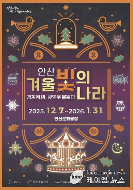 (케이엠뉴스) 안산시는 주말인 오는 7일을 시작으로 내년도 1월 31일까지 두 달여 간 고잔동 안산문화광장 일대에서 겨울 야간 축제, ‘2025 안산 겨울 빛의 나라’를 개최한다고 1일 밝혔다.