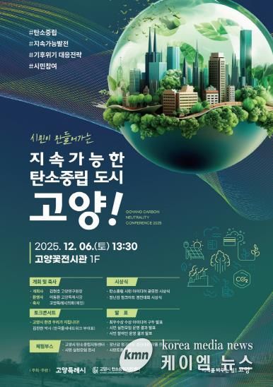 (케이엠뉴스) 고양특례시는 오는 12월 6일 오후 1시 30분 고양시 꽃박람회 전시장에서 ‘시민이 만들어가는 지속가능한 탄소중립도시 고양!’ 성과보고회를 개최한다고 밝혔다.