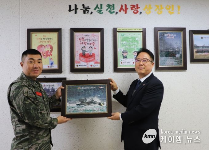 (케이엠뉴스) 해병대 제2사단 상장대대가 올해도 ‘사랑의 헌혈퍼즐’을 완성하며 6년 연속 참여 기록을 이어갔다. 인천혈액원은 최근 상장대대를 방문해 퍼즐 완성증을 전달하고, 혈액 부족 시기 공동 대응과 장병 참여 활성화를 위한 실질적 협업 방향을 함께 모색했다.