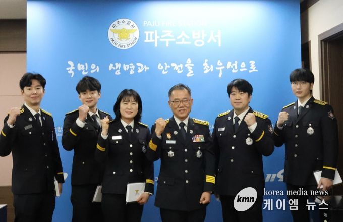 (케이엠뉴스) 파주소방서는 1일 본서 서장실에서 근속승진 대상자 11명에 대한 계급장 수여식을 실시했다.