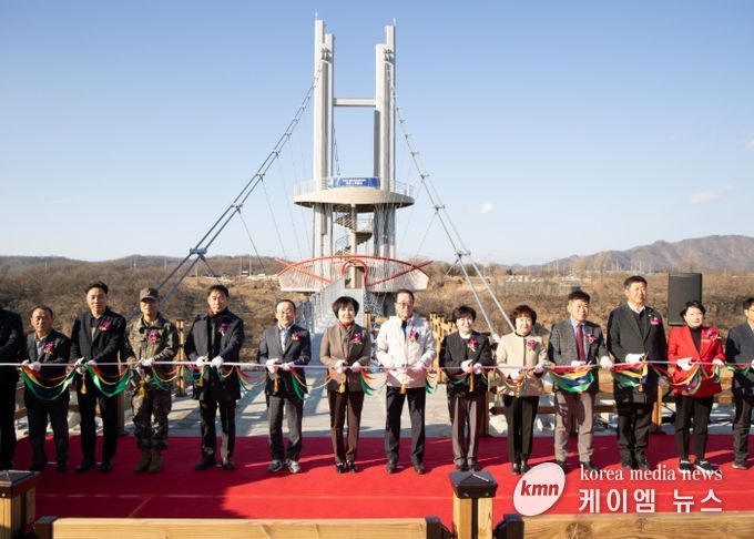 이번 사업은 행정안전부의 접경지역 발전지원사업에 포함되어 총사업비 136억 원을 투입해 2024년 1월 착공, 지난달 27일 준공됐다. 보도현수교(출렁다리) 길이 300m, 폭 1.5m, 진입도로 길이 200m, 폭 6m, 휴게쉼터 1,855㎡, 주차장 75면을 조성해 방문객들에게 최적의 편의를 제공하고 있다.
