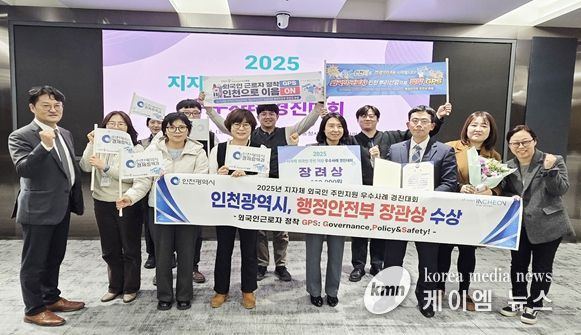 (케이엠뉴스) 인천광역시는 지난 12월 1일 행정안전부에서 주최한‘2025년 지자체 외국인주민 지원 우수사례 경진대회’에서 ‘외국인근로자 정착 GPS Governance,Policy·Safety!’프로그램으로 장려상을 수상했다고 밝혔다.