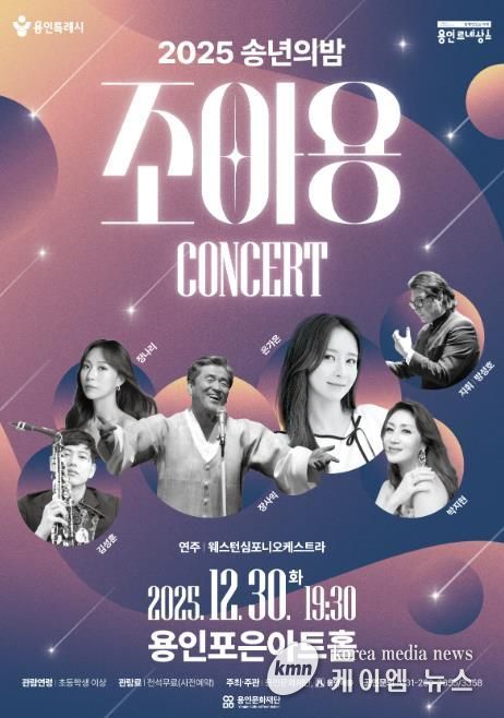 (케이엠뉴스) 용인문화재단은 오는 12월 30일 용인포은아트홀에서 지역예술인과 함께하는 ‘2025년 송년의 밤 - 조아용 콘서트‘를 용인예총(한국예총 용인지회)과 공동 개최한다.