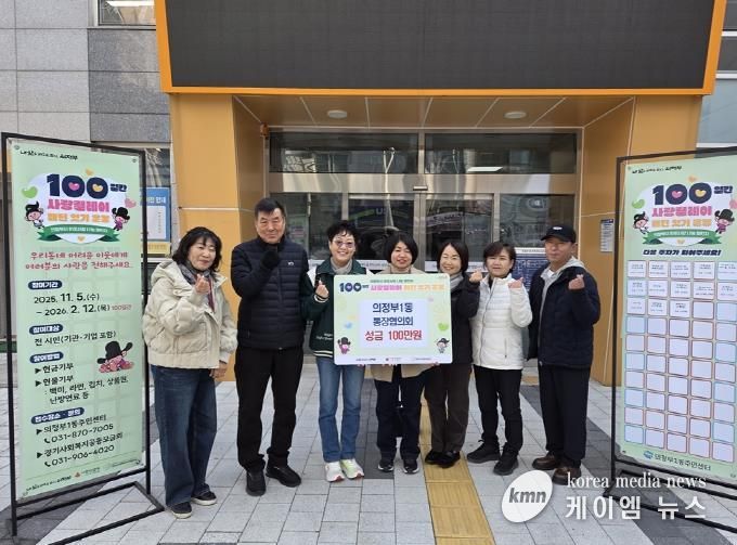 (케이엠뉴스) 의정부시 의정부1동주민센터는 12월 3일 의정부1동 통장협의회 회원들이 ‘100일간 사랑릴레이 배턴 잇기’에 동참해 성금 100만 원을 기부했다고 밝혔다.
