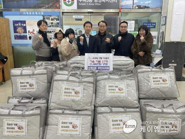 (케이엠뉴스) 구리시 수택3동 주민자치회는 지난 3일, 겨울철 한파에 대비하여 관내 저소득 어르신 가정 27세대에 겨울 이불 27채(약 108만원 상당)를 전달했다고 밝혔다.