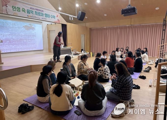 (케이엠뉴스) 충청남도어린이인성학습원(원장 한유미)은 도내 영유아교직원을 대상으로 11월 27일 ‘인성 속 음악치료와 생태 수학’을 주제로 역량강화교육을 진행했다. 이번 교육은 한국 숲 인성 교육 개발원 김미란 강사가 참여해 일상 속 놀이를 통한 인성교육 방법을 전달하며 의미 있게 구성됐다.