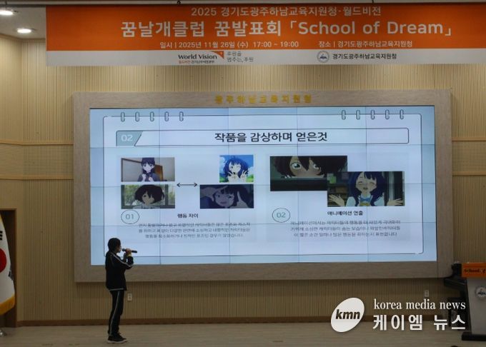 (케이엠뉴스) 경기도광주하남교육지원청과 월드비전 경기남부사업본부는 지난 11월 26일 교육지원청 대강당에서 ‘꿈날개클럽 꿈발표회’를 열고, 참여 학생들의 1년간 성장 여정을 나누는 자리를 마련했다.