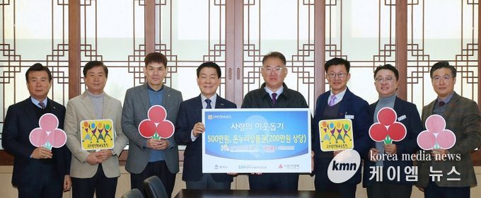 (케이엠뉴스) (사)포승경영자협의회와 한국산업단지공단은 지난 3일 평택시청 대외협력실에서 평택행복나눔본부에 성금 500만 원과 상품권 200만 원을 전달했다.