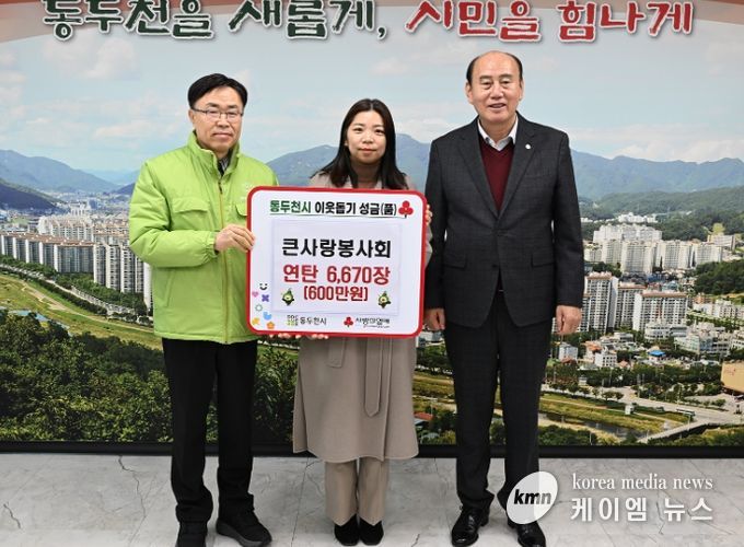 (케이엠뉴스) 큰사랑봉사회는 지난 12월 5일 동두천시청을 방문해 지역 내 에너지 취약계층을 지원하고자 연탄 6,670장(600만 원 상당)을 기탁했다.