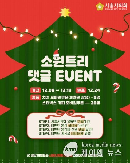 (케이엠뉴스) 경기 시흥시의회가 다가오는 성탄절을 맞아 시민들과 따뜻한 마음을 나누고 소통을 강화하기 위해 ‘소원트리 댓글 이벤트’를 진행한다.