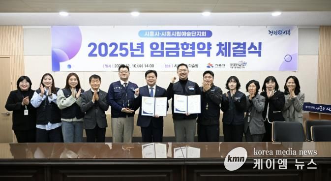 (케이엠뉴스) 시흥시가 시립예술단 노조와 예술단원 처우 개선을 담은 ‘2025년 임금협약’을 체결했다. 시는 12월 10일 시청 다슬방에서 전국공공운수사회서비스노동조합 경기문화예술지부 시흥시립예술단지회와 임금 협약식을 진행했다.