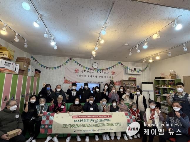 (케이엠뉴스) 포천시청소년재단 포천시청소년교육문화센터 청소년방과후아카데미 소속 ‘방송단’은 지난 12일 써미트노인주간보호센터를 방문해 어르신을 위한 재능기부활동을 진행했다.