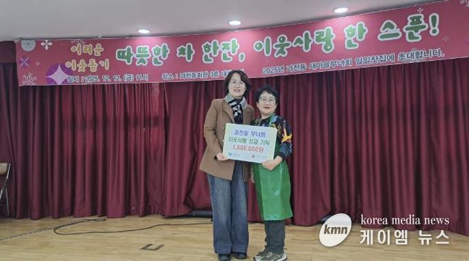 (케이엠뉴스) 과천시 과천동 새마을부녀회는 지난 12일 지역사회를 위한 따뜻한 나눔 실천으로 불우이웃돕기 성금 150만 원을 기부했다고 밝혔다.