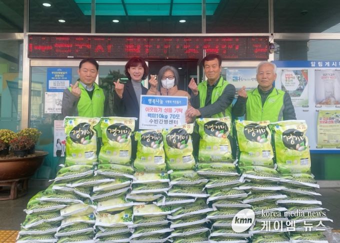 (케이엠뉴스) 경기도 고양시에 있는 수빈간병센터가 지난 11일 평택시 청북읍 행정복지센터에 백미(10㎏) 70포를 기부했다.