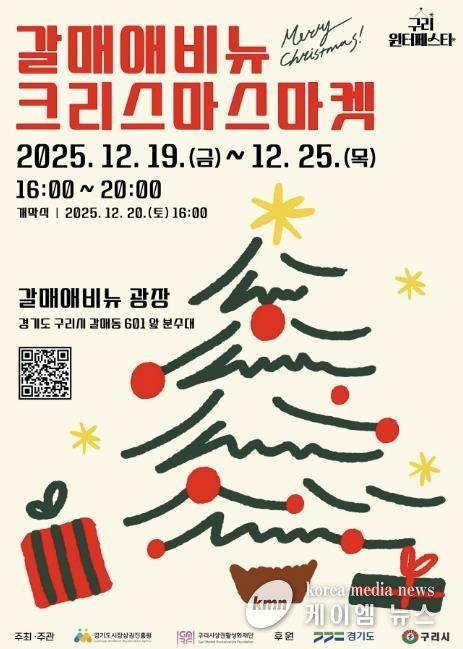 (케이엠뉴스) 구리시상권활성화재단은 오는 12월 19일부터 25일까지 갈매 애비뉴 광장에서 ‘2025 구리윈터페스타–갈매애비뉴 크리스마스 마켓’을 개최한다고 밝혔다.