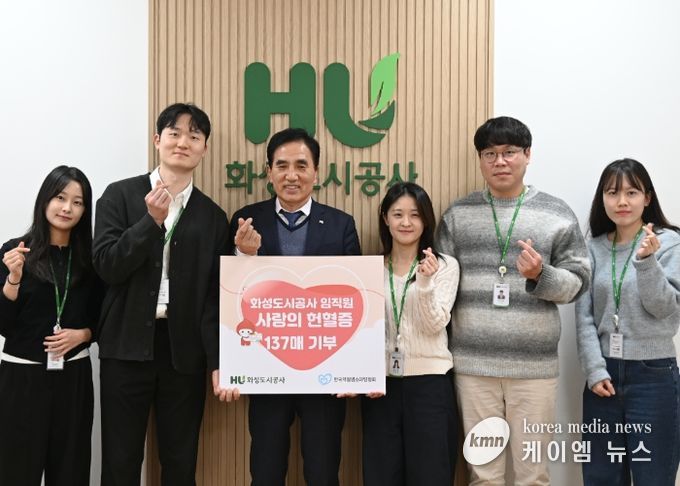 (케이엠뉴스) 화성도시공사는 연말을 맞아 임직원들의 자발적 참여로 모인 헌혈증 137매를 한국백혈병소아암협회에 기부하며, 생명 나눔을 통한 사회적 가치 실현에 나섰다고 밝혔다.