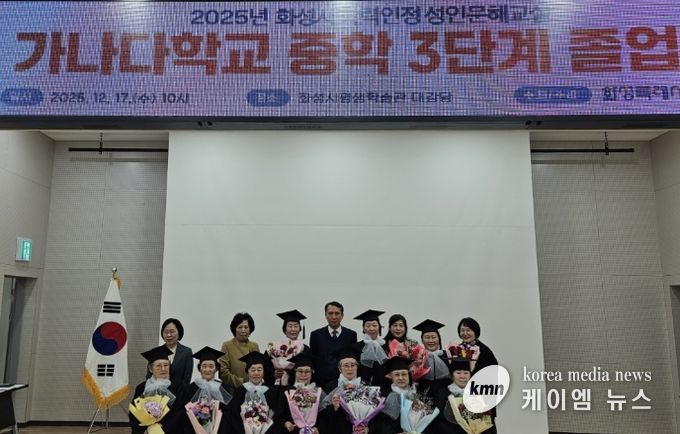 (케이엠뉴스) 화성특례시는 17일 화성시평생학습관에서 ‘2025년 학력인정 성인문해교실 가나다학교 졸업식’을 개최했다.
