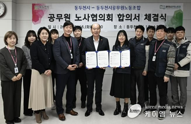 (케이엠뉴스) 동두천시와 동두천시공무원노동조합은 지난 16일 동두천시청 1층 소회의실에서 공무원 노사협의회 합의서 체결식을 개최했다고 밝혔다.