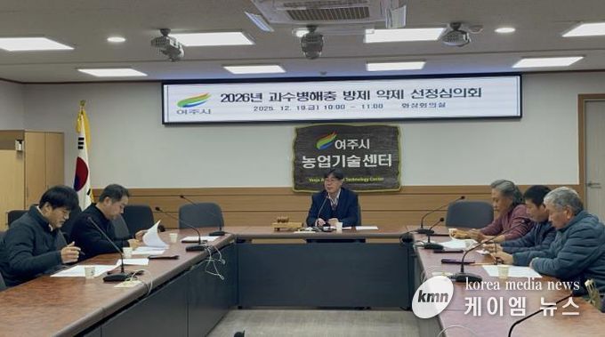 (케이엠뉴스) 여주시는 12월 19일 여주시농업기술센터에서 2026년 과수 병해충(화상병, 돌발병해충) 예방을 위한 방제 약제 선정심의회를 개최했다.
