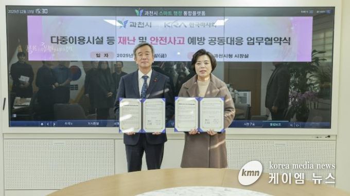 (케이엠뉴스) 과천시는 지난 19일 한국마사회와 ‘재난 안전 강화를 위한 공동대응’ 업무협약을 체결했다고 22일 밝혔다. 이번 협약은 재난 발생 시 신속한 대응 체계를 마련하고, 지역사회 안전 관리 역량을 높이기 위해 추진됐다.