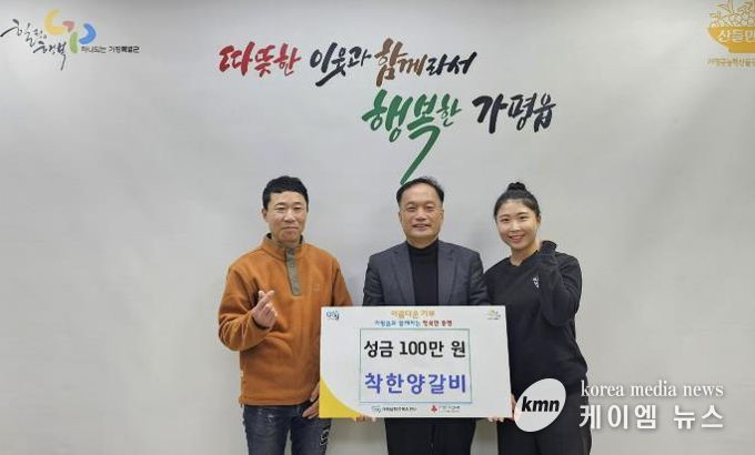 (케이엠뉴스) 가평군 가평읍 경춘로 소재 착한양갈비는 지난 19일 행정복지센터를 방문해 이웃돕기 성금 100만 원을 기탁했다.