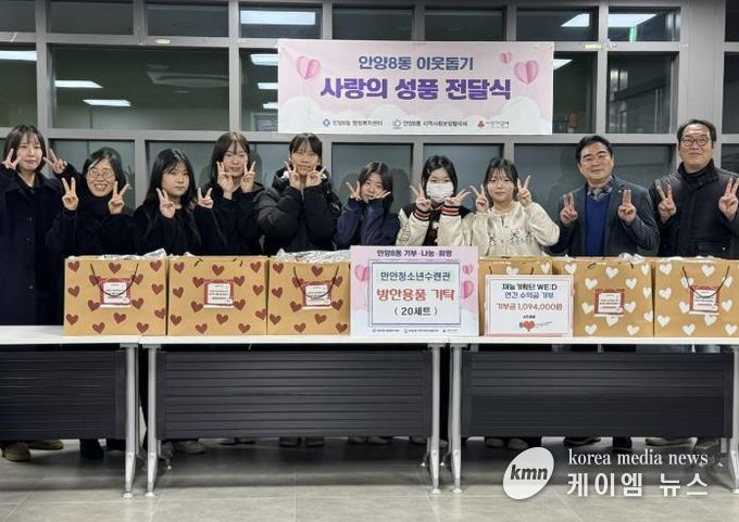 (케이엠뉴스) 안양시 만안구 안양8동 행정복지센터에 따르면 지난 18일 만안청소년수련관의 청소년 자치활동 프로그램 ‘재능기획단’이 관내 혼자 생활하는 어르신들에게 전달해달라며 센터에 1,094,000원 상당의 방한용품 20세트를 기탁했다고 23일 밝혔다.