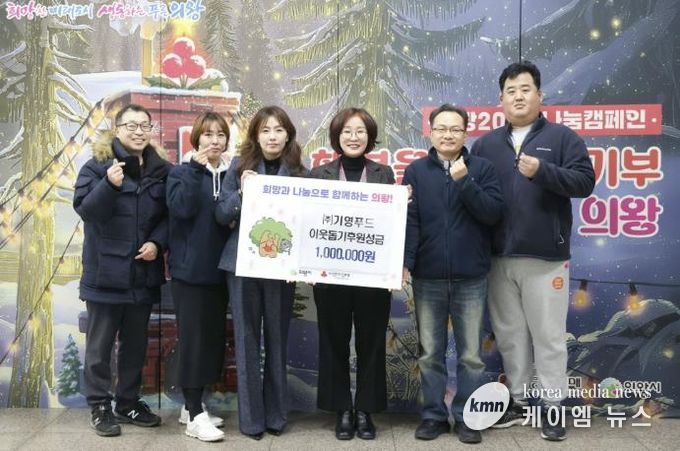 (케이엠뉴스) 의왕시가 12월 22일 (주)기영푸드로부터 어려운 이웃을 돕기 위한 성금 100만원을 기부받았다고 밝혔다.