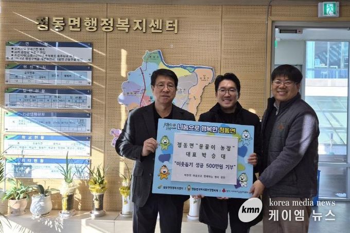 (케이엠뉴스) 점동면 관내 꿀꿀이 농장 박승대 대표가 지난 12월 22일, 연말을 맞아 이웃사랑 성금 500만원을 경기사회복지공동모금회를 통해 점동면 지정기탁으로 점동면행정복지센터에 전달하며 지역사회에 따뜻한 감동을 전했다.