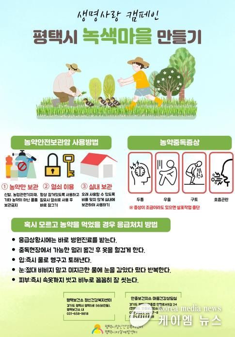 (케이엠뉴스) 평택시 안중보건지소에서는 지난 15일부터 18일까지 농촌지역인 현덕면 덕목1리 등 5개소를 대상으로 농약 음독사고 예방을 위한 생명사랑 캠페인을 진행했다고 밝혔다.