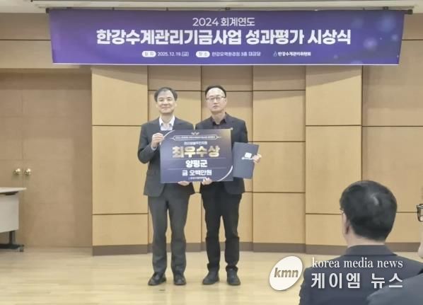(케이엠뉴스) 양평군은 지난 19일 한강유역환경청이 실시한 ‘2024년도 한강수계관리기금 성과평가’에서 주민지원사업 부문 최우수, 오염총량관리사업 부문 장려를 수상했다고 밝혔다.