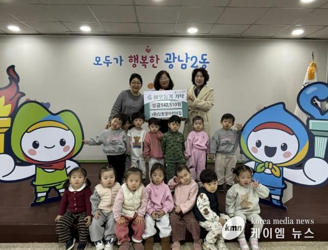 (케이엠뉴스) 딩동댕어린이집은 23일 광주시 광남2동 행정복지센터를 방문해 원아들이 직접 모은 성금 54만 2천510원을 기탁했다.