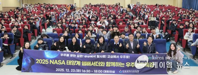 (케이엠뉴스) 인천광역시교육청은 관내 초·중·고등학생 450명을 대상으로 NASA JPL 태양계 앰배서더인 폴윤 교수의 우주과학 특강 ‘NASA 우주 탐사와 우주 경제’를 운영했다.