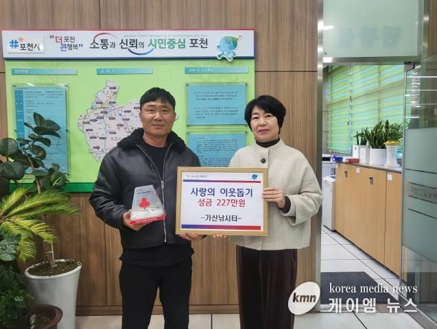 (케이엠뉴스) 포천시 가산면 행정복지센터는 지역 내 소외계층 지원을 위해 가산낚시터가 성금 227만 원을 기탁했다고 밝혔다.