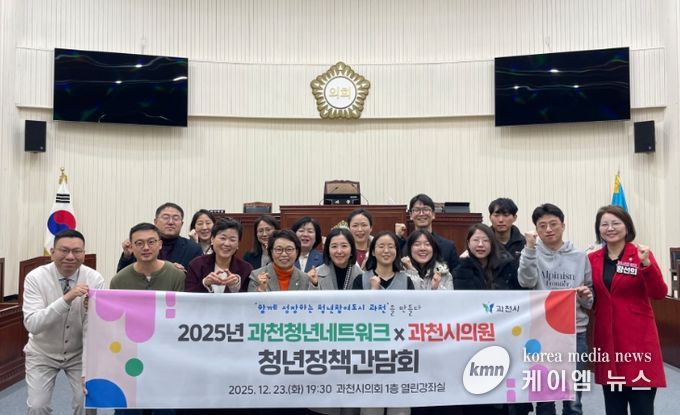 (케이엠뉴스) 과천시는 지난 23일 과천시의회 열린강좌실에서 과천청년네트워크와 과천시의회 의원이 참석한 가운데 ‘함께 성장하는 청년참여도시 과천을 만들다, 2025년 과천시 청년정책 발전을 위한 청년정책간담회’를 개최했다고 밝혔다.