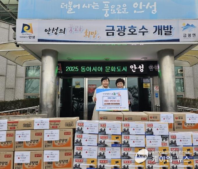 (케이엠뉴스) 안성시는 12월 23일, 금광면 주민자치위원회 양영순 위원장이 겨울철 취약계층 가구의 따뜻한 겨울나기를 돕기 위해 라면, 김 등 생필품 100만원 상당을 금광면 행정복지센터에 기탁했다고 밝혔다.