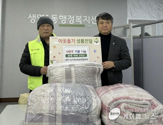 (케이엠뉴스) 생연1동 지역사회보장협의체는 지난 22일 주택 화재로 피해를 입은 관내 가구를 방문해 이불을 전달했다고 밝혔다.