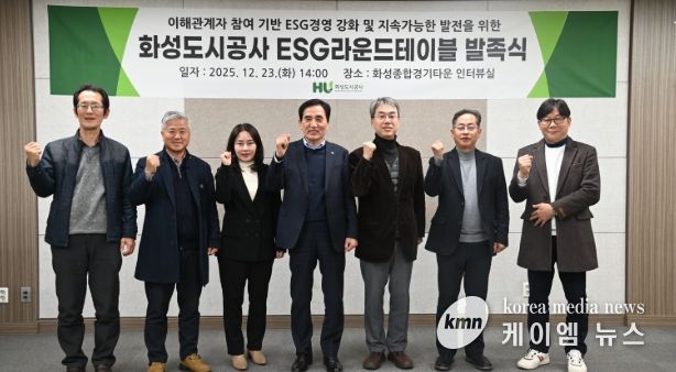 (케이엠뉴스) 화성도시공사는 23일 '화성도시공사 ESG 라운드테이블 발족식'을 열고, ESG(환경·사회·지배구조) 경영을 체계적으로 추진하기 위한 협력 기반을 마련했다.