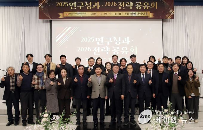 (케이엠뉴스) 충남역사문화연구원은 24일 오전 11시 공주 브이아이피웨딩홀에서 ‘연구원 성과·전략 공유회’를 열고 2025년 주요 성과를 공유하는 한편 2026년 추진 전략을 대내외에 제시했다.