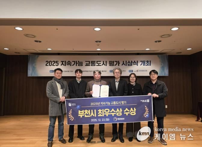 (케이엠뉴스) 부천시는 국토교통부가 주최하고 한국교통연구원이 주관한 ‘2025년 지속가능 교통도시 평가’에서 인구 30만 명 이상 단일도시 부문 최우수상을 받았다고 26일 밝혔다.