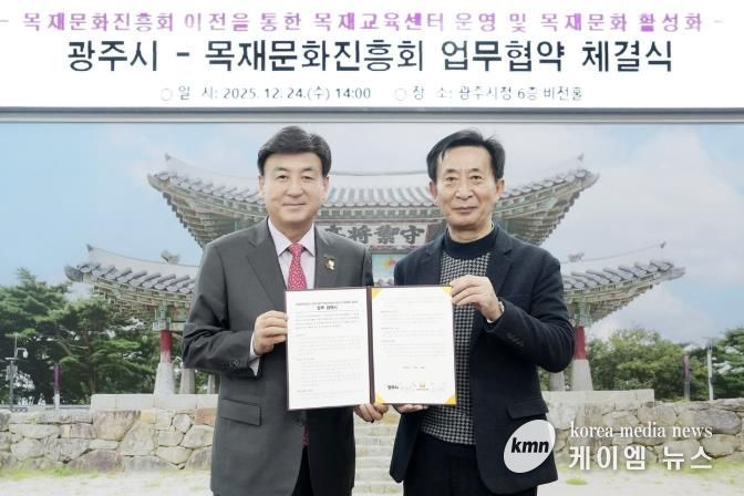 (케이엠뉴스) 광주시는 지난 24일 시청에서 목재문화진흥회와 ‘탄소중립 목재교육종합센터’의 성공적인 운영과 목재문화 활성화를 위한 업무협약(MOU)을 체결했다.