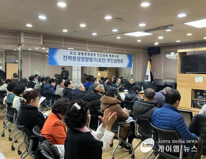 (케이엠뉴스) 오산시 남촌동 행정복지센터는 지난 24일 궐동문화공원 조성사업과 관련한 환경영향평가 주민설명회를 개최하고, 지역 주민 60여 명을 대상으로 사업 내용을 공유하며 의견을 수렴했다고 밝혔다.