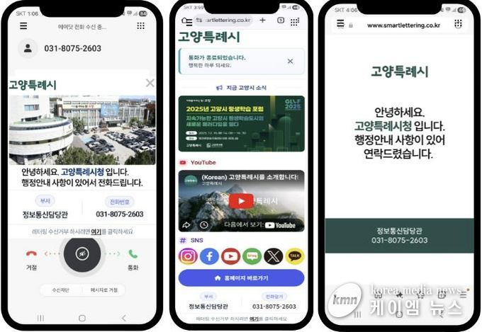 (케이엠뉴스) 고양특례시는 ‘거점형 스마트 조성 사업’의 일환으로 행정전화에 대한 시민 신뢰도를 높이고 민원 응대 효율을 개선하기 위해 ‘스마트 레터링 서비스'를 구축했다고 26일 밝혔다.