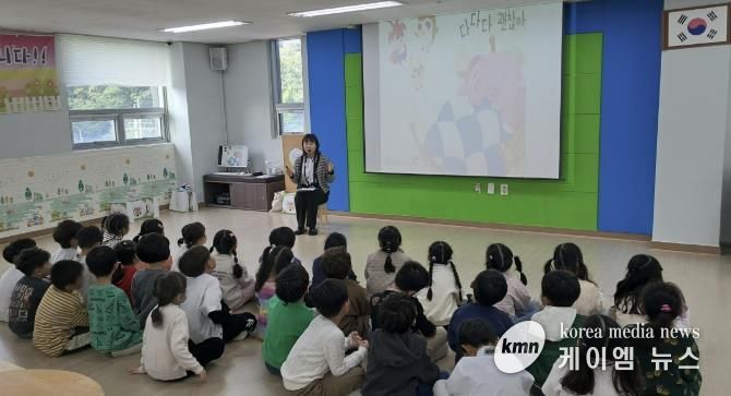 프로그램은 유아의 눈높이에 맞춰 센터에서 직접 개발한 동화책 읽어주기, 왕관·팔찌 등 만들기 활동, 노래 및 율동 배우기로 구성됐다. 교육을 마친 후에는 각 가정에 다다다 괜찮아 스티커북을 제공해 부모님과 함께 복습하는 시간을 가지도록 했다.